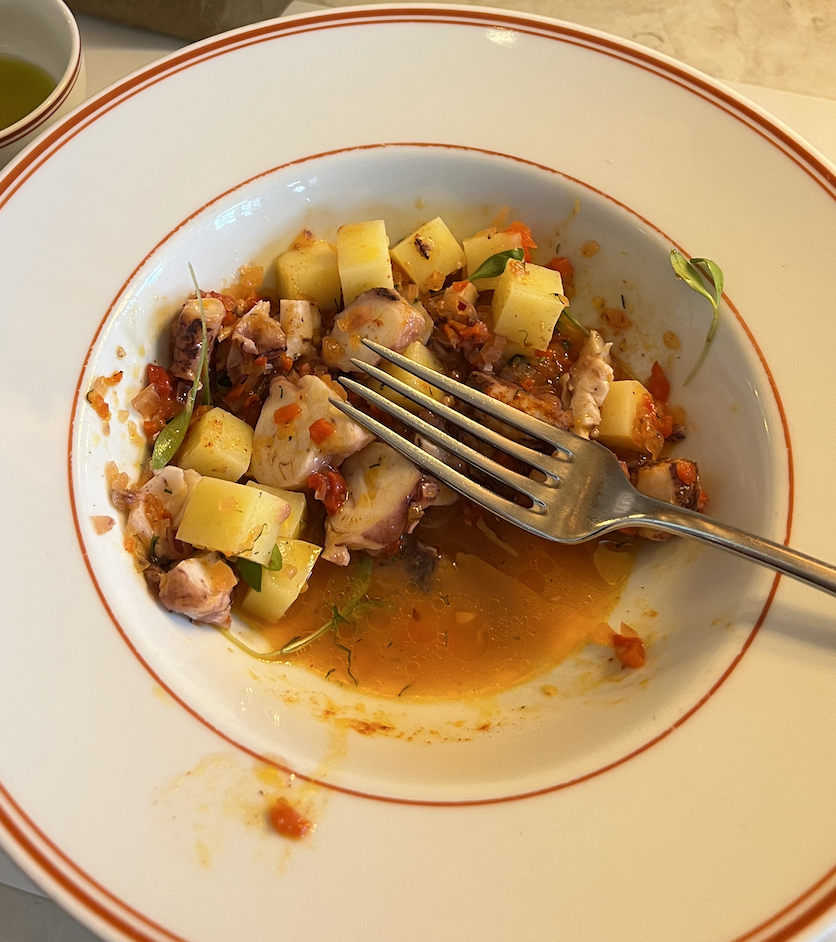 For my appetizer, I ordered the octopus salad with a vinaigrette and smoked paprika. This was delicious! The octopus was perfectly cooked and cut into bite size pieces alongside bite size squares of potato. The smoked paprika was not too over powering and the dish was overall very light.