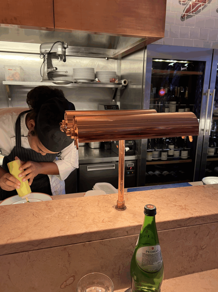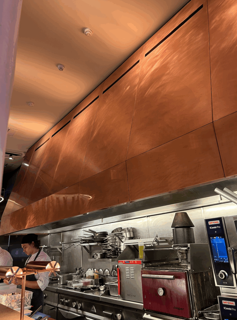My reservation was for a seat at the counter, which was great because they have an open kitchen and I was able to watch the chefs prepared my meal for me. I love that! I also love the decor of the restaurant – the copper aesthetic is a v nice touch👌