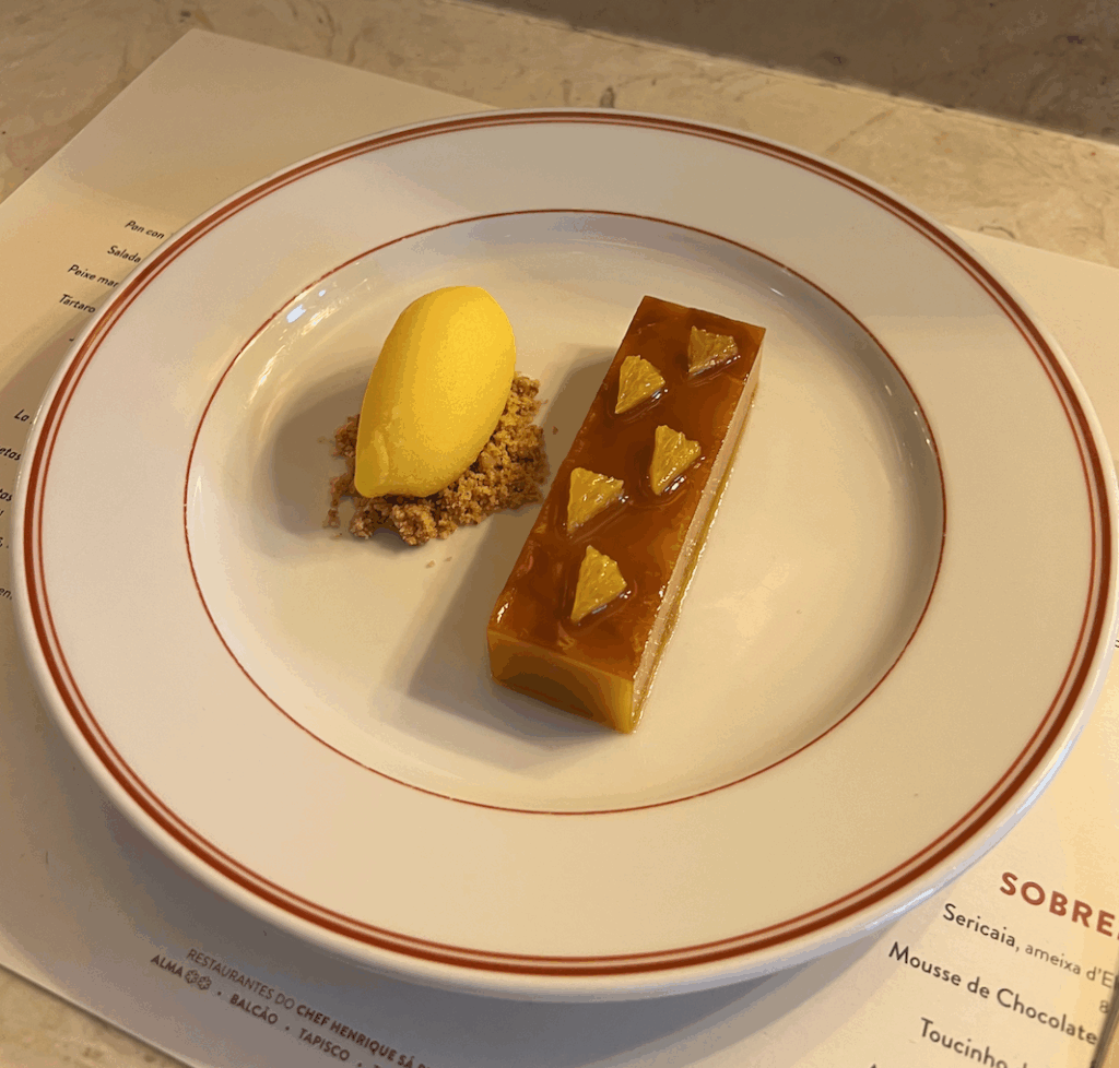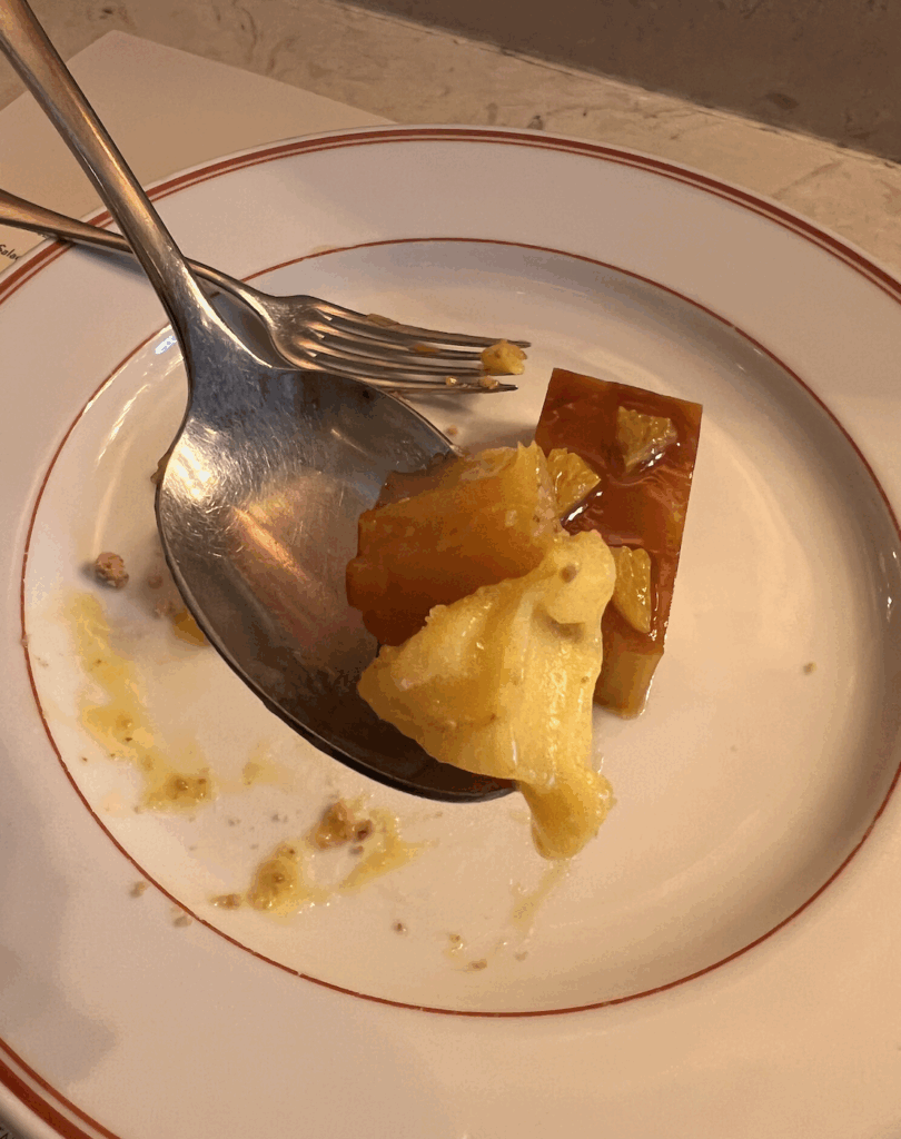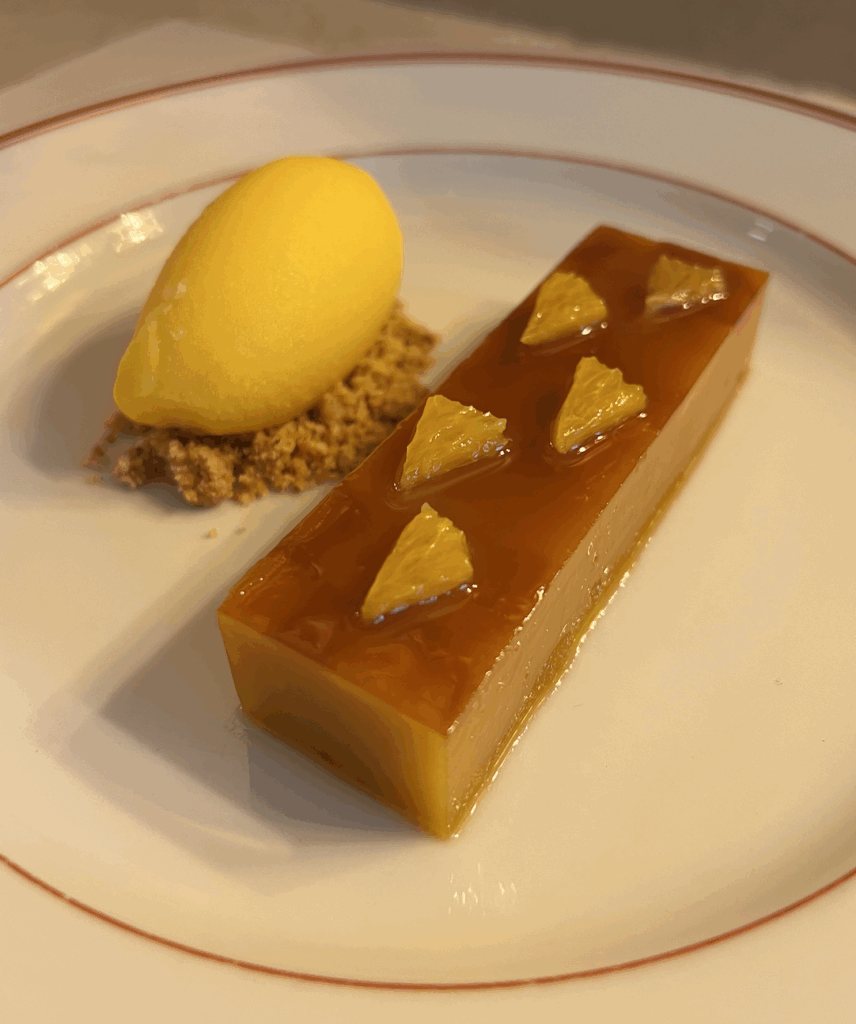 This was a very interesting flan to me as it was much more firm than I am used to. The flavor was really good and there were notes of port wine. It came with a scoop of tangerine sorbet that sat on top of a sweet oat crumble, and that mixed with the flan was quit amazing. I savored every single bite of this one 😋