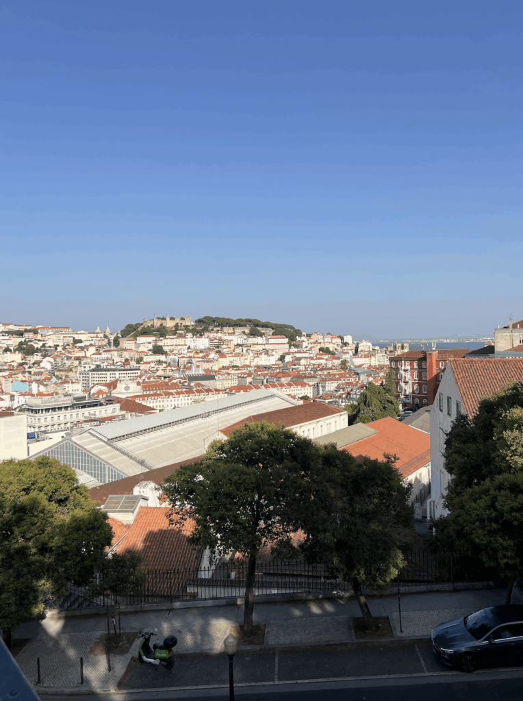 It was almost a mile from my hotel, so I decided to walk. The walk was really great but there were a lot of stairs involved. Luckily, once I got to the top of the hill, I was greeted with the wonderful view from Miradouro de São Pedro de Alcântara.