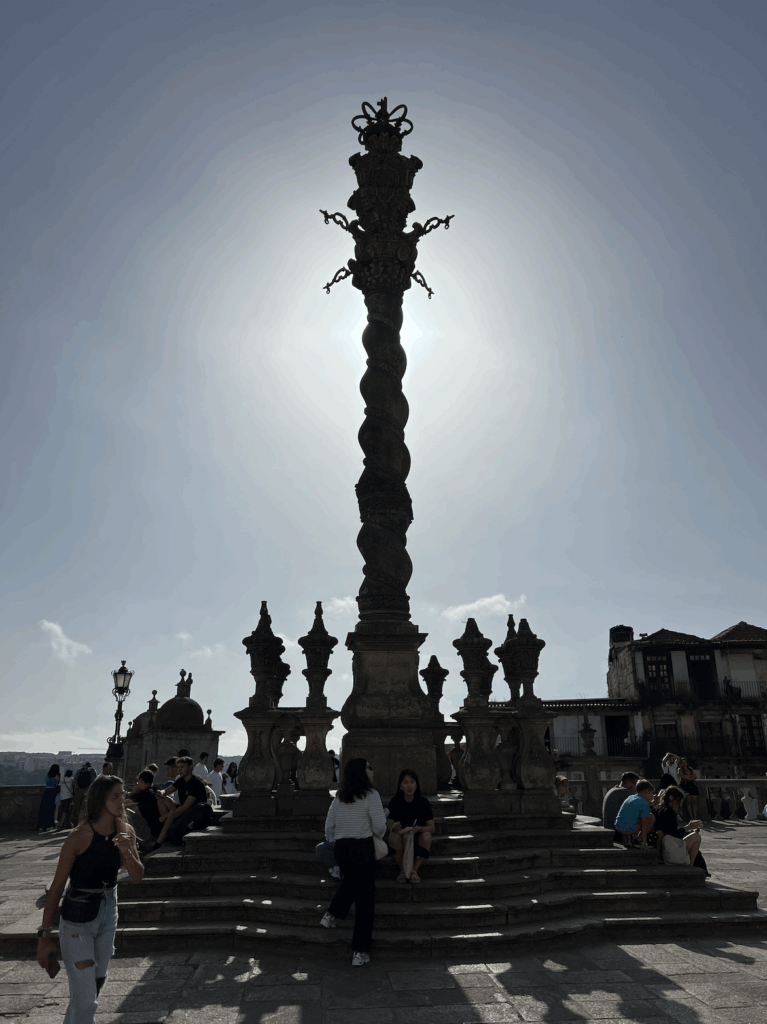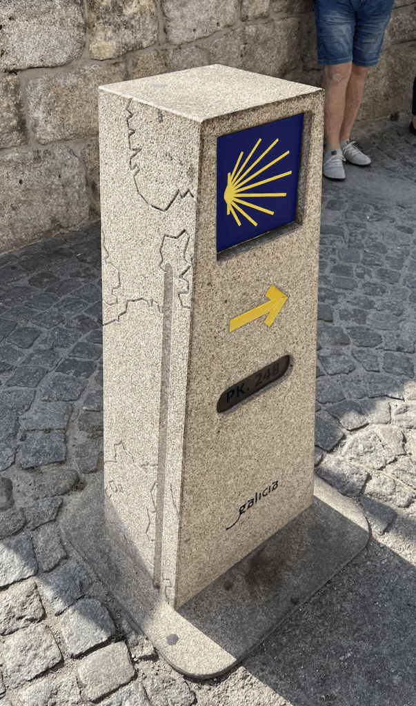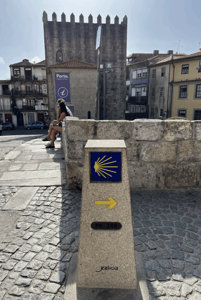 The tour guide pointed out to me there is a stone outside the cathedral with a clam shell and an arrow pointing to the north. He said that there are stones like this all over Portugal and Spain and the arrow is always pointing in the direction of the Cathedral in Santiago de Compostela.