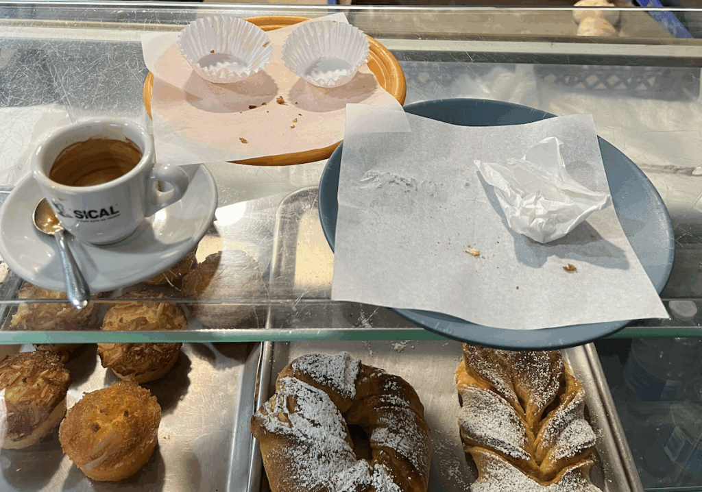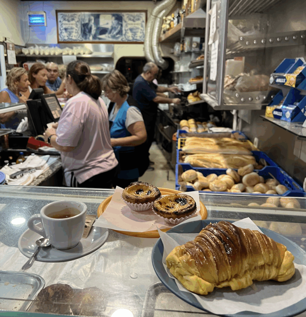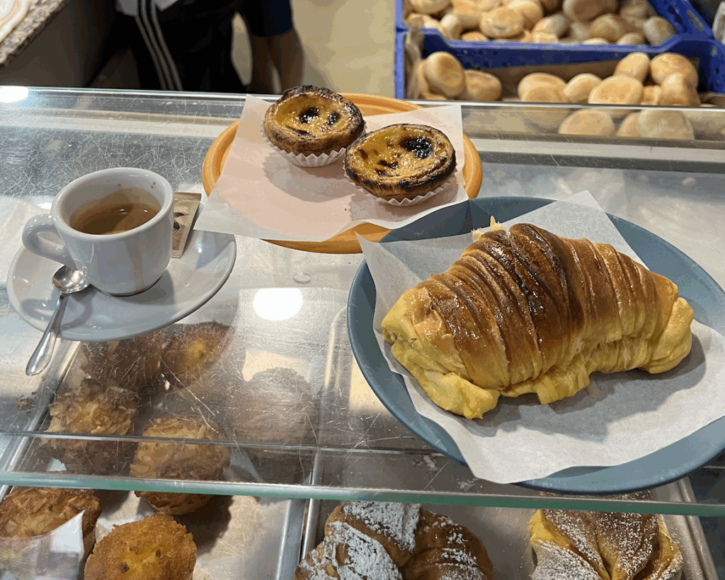 My move in these situations is to look around and see what other people are ordering. Then I could just point at different things and use my fingers to say how many. I ended up with two pasteis de nata, an espresso and a croissant. Everything was fresh and delicious!